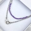 Le bracelet double-rang Hathor est composé de cercles entrelacés et de chaines en acier argenté inoxydable, élégamment ornées de perles naturelles facettées d'Améthyste à la douce teinte violette.